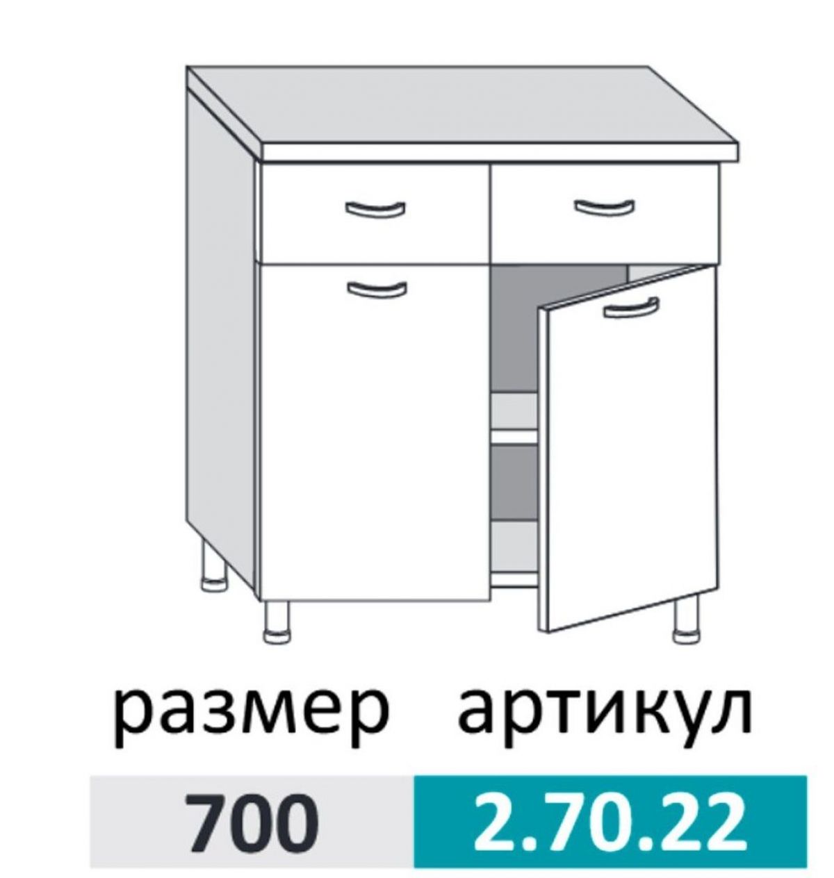 МЕЛИССА 2.70.22 Шкаф-стол на 700мм с 2-я ящиками и 2-мя дверцами (б/столешницы)